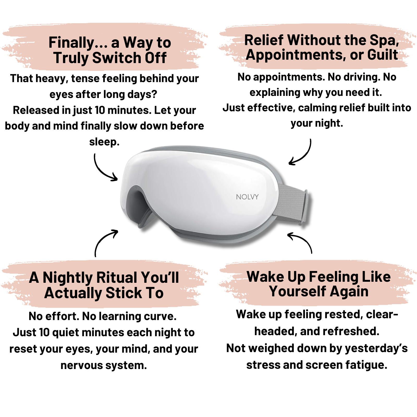 "I used to buy eye creams, cooling masks, heating pads, and take pain meds for headaches. NOLVY does what all of them couldn't. Saves me money AND space. Wish I'd found this years ago."